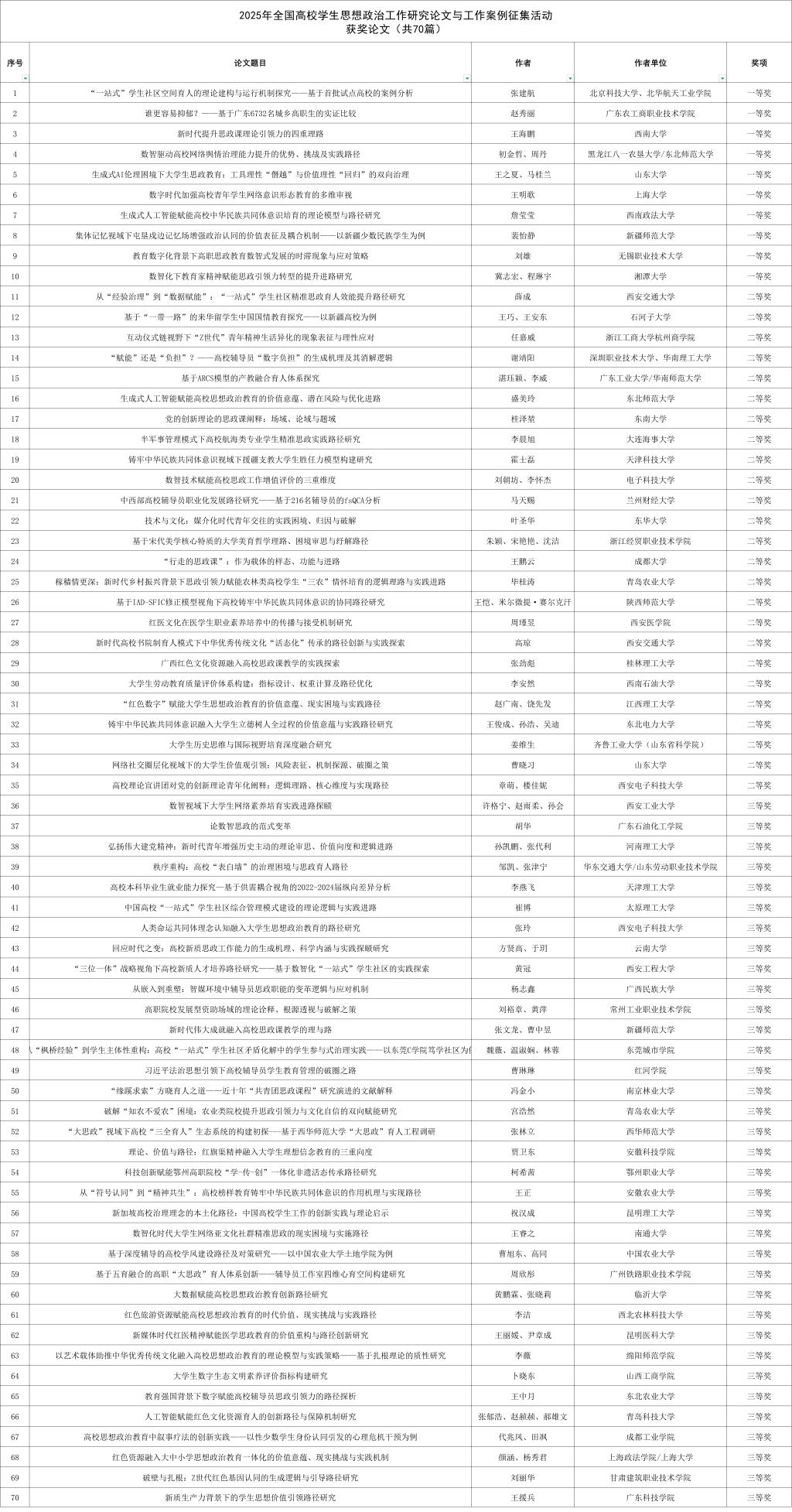 获奖论文名单(共70篇)