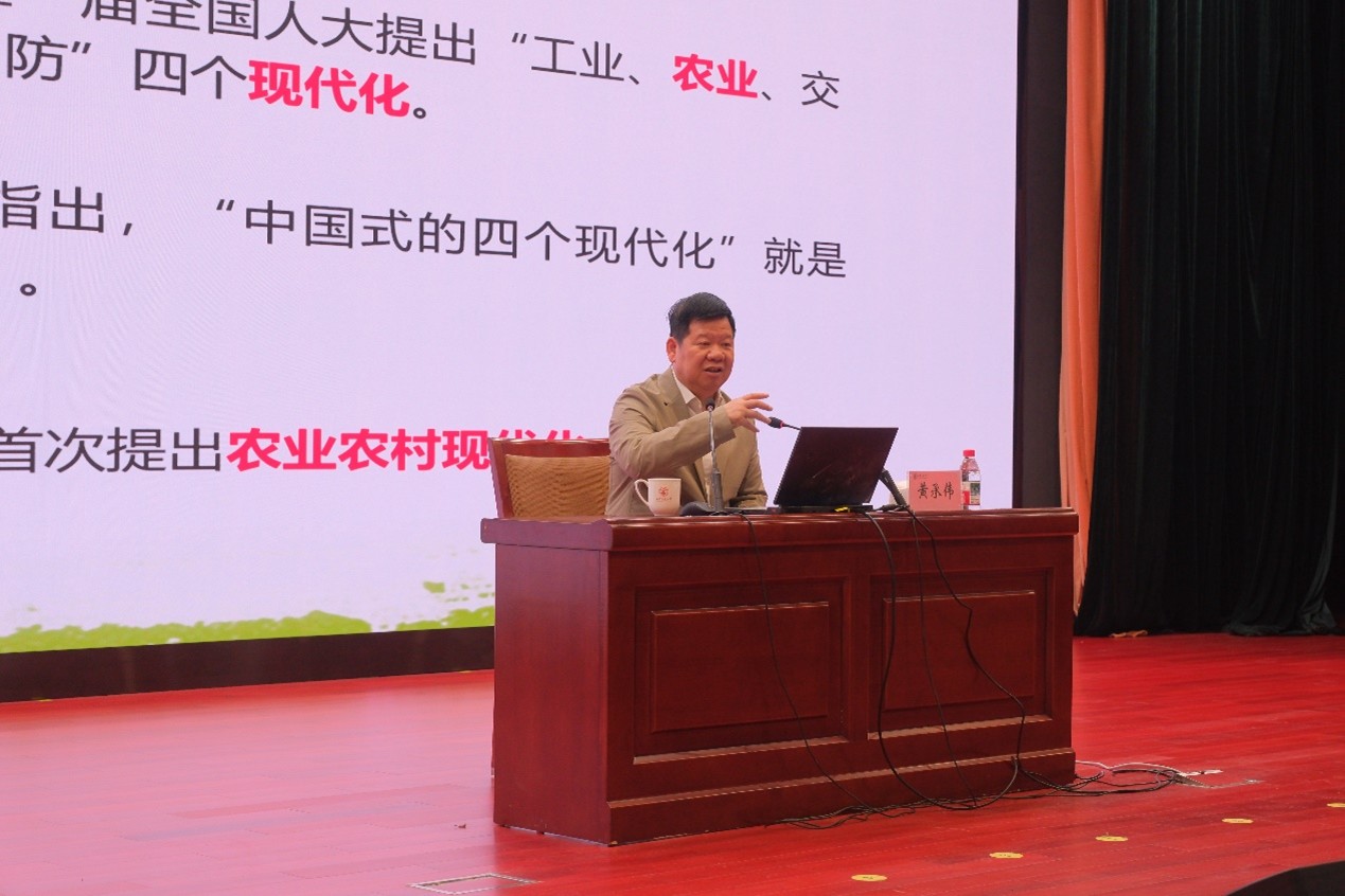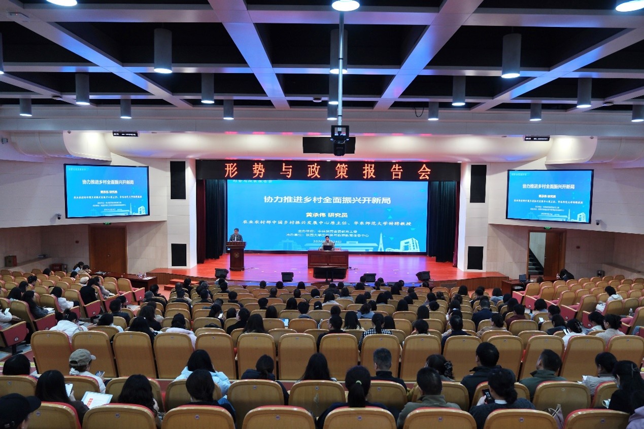 近日,由中共陕西省委教育工委主办、陕西大学生形势与政策教育信息中心承办的形势与政策报告会在西安交通大学兴庆校区主楼多功能报告厅举行。农业农村部中国乡村振兴发展中心原主任、华东师范大学特聘教授黄承伟研究员应邀作《学习领会2026年全国两会精神协力推进乡村全面振兴开新局》主题报告。陕西高校马克思主义学院院长、形势与政策教研室主任、思政课教师代表,以及我校辅导员代表、学生代表等300余人参加报告会。陕西大学生形势与政策教育信息中心主任、西安交通大学马克思主义学院院长燕连福教授主持报告会。