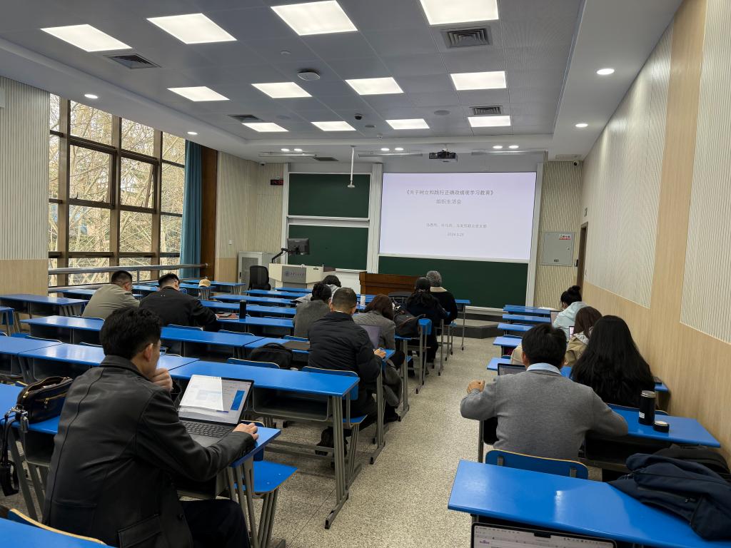 为深入学习贯彻习近平总书记关于树立和践行正确政绩观的重要论述,引导全体党员以正确政绩观引领科研与教学实践,2026年3月25日下午,马克思主义学院马原所、马发所、外马所联合党支部在主A-102教室开展专题组织生活会。