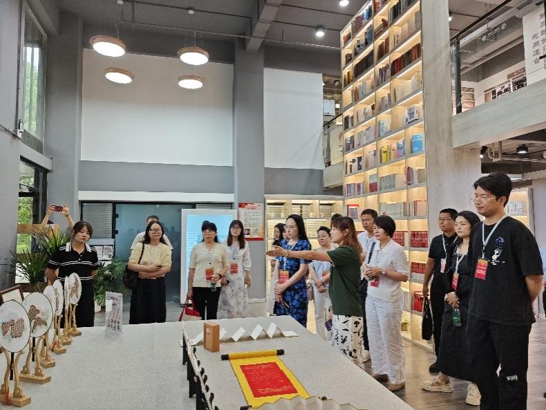 调研团队首先来到解放门街道的皇城书坊,实地考察该社区如何运用文化空间提升公共文化服务效能。面对社区居民文化需求多元、代际融合难等问题,皇城书坊依托其特色“书香+活动”融合平台,在活化空间、服务惠民上取得实效。团队成员深入了解到,从居民书籍借阅的便捷服务到非遗体验活动的即时互动,从主题读书会的精心策划到小型音乐会的氛围营造,书坊的每一个服务环节都聚焦于文化浸润与邻里联结。此外,书坊定期开展的一系列涵盖剪纸、面花制作等特色非遗工坊活动,有效吸引了不同年龄段居民参与,促进了传统文化的代际传承与社区和谐。